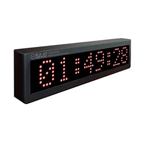 نمایشگر دیجیتال مدل T24M33D، برای نمایش ساعت، تاریخ و متن در محیطهای داخلی (Indoor) و خارجی (Outdoor) طراحی شده است. نوع ارتباط پیشفرض برای این نمایشگر شبکه LAN (Ethernet/Wi-Fi) میباشد و با پشتیبانی از پروتکلهای NTP (پروتکل اختصاصی برای تنظیم دقیق زمان شامل ساعت و تاریخ) و SNMP (ویژه مدیریت و مانیتورینگ تجهیزات در محیط شبکه) از طریق این شبکه تنظیم، کنترل و مانیتور میشود. بنابر درخواست، ارتباطهای SAAT_Line (ارتباط دوسیمه صنعتی)، بیسیم و EBU/SMPTE نیز به صورت جایگزین قابل ارائه هستند.